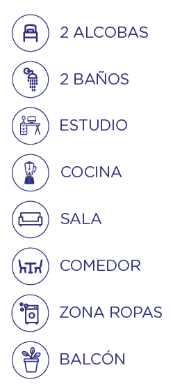 *Declaración legal: Las imágenes son una representación artística aproximada del diseño, los acabados, texturas, dimensiones, formas, distribución, especificaciones y áreas del proyecto, son susceptibles a cambios por parte de la compañía constructora sin previo aviso. El mobiliario y los vehículos no hacen parte del proyecto. El urbanismo cerca al proyecto hace parte de una representación artística y aproximada que no compromete ninguna entidad pública o privada.