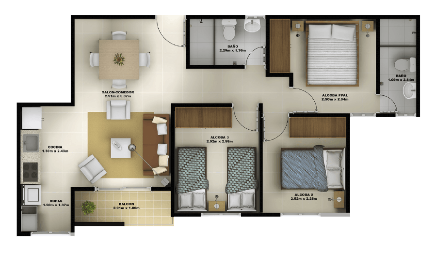 *Declaración legal: Las imágenes son una representación artística aproximada del diseño, los acabados, texturas, dimensiones, formas, distribución, especificaciones y áreas del proyecto, son susceptibles a cambios por parte de la compañía constructora sin previo aviso. El mobiliario y los vehículos no hacen parte del proyecto. El urbanismo cerca al proyecto hace parte de una representación artística y aproximada que no compromete ninguna entidad pública o privada.